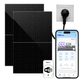 Wat zit er in de doos? 2 zonnepanelen, micro-omvormer, netsnoer en een WiFi-module om je opbrengst te volgen.